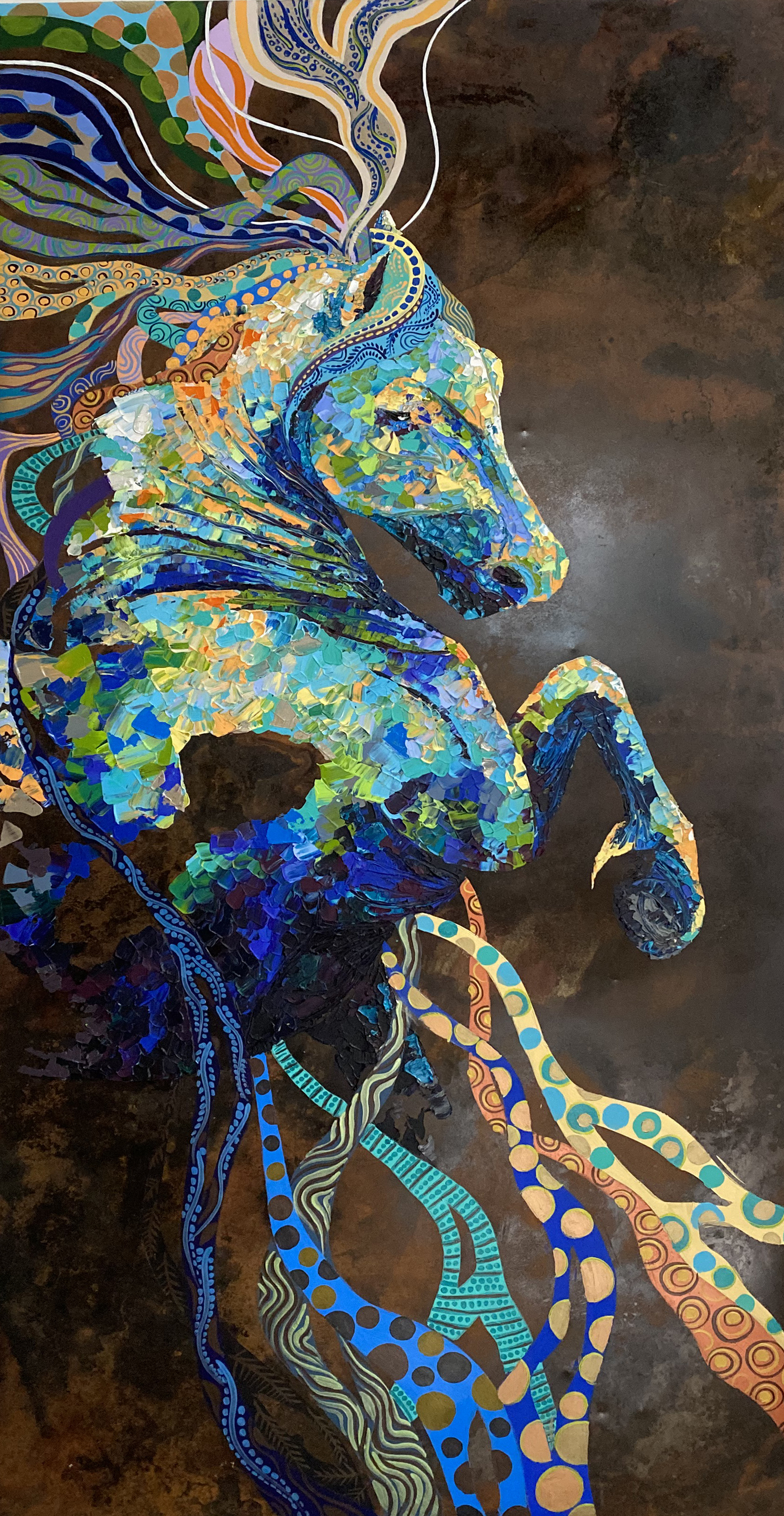 Lo que espero lograr con mis obras es que transmitan sensaciones, que logren emociones. Porque a mi obra trato de impartirle toda la fuerza, que de tanto mirarla encuentren en el color la esencia de lo que digo. En ella, las astas compiten con lunas menguantes y las crines con los rayos solares, porque en mis obras quiero lograr que se vea lo que –tal vez por cansancio– olvidamos de mirar.