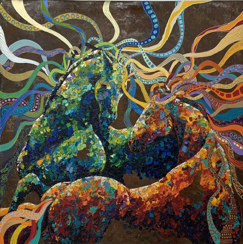 Lo que espero lograr con mis obras es que transmitan sensaciones, que logren emociones. Porque a mi obra trato de impartirle toda la fuerza, que de tanto mirarla encuentren en el color la esencia de lo que digo. En ella, las astas compiten con lunas menguantes y las crines con los rayos solares, porque en mis obras quiero lograr que se vea lo que –tal vez por cansancio– olvidamos de mirar.
